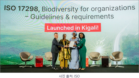 국제표준화기구(ISO)1)는 2025년 10월 6일부터 10일까지 르완다 키갈리에서 연례총회(AM25)를 개최하였다. ISO는 이번 총회에서 전 세계 기업과 기관이 생물다양성 보전을 위해 구체적인 행동을 취할 수 있도록 돕는 첫 국제표준 「ISO 17298: 조직을 위한 생물다양성 - 지침 및 요구사항(Biodiversity for Organizations – Guidelines and Requirements)」을 공식 발표하였다. 이 표준은 기업이나 기관이 생물다양성에 미치는 영향과 의존성을 평가하고, 관련 위험과 기회를 체계적으로 관리하도록 돕는 실질적 가이드라인이다.