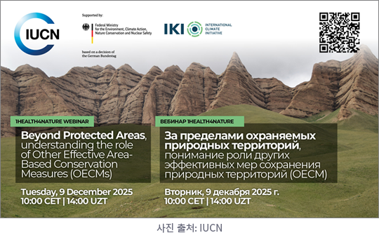 쿤밍-몬트리올 글로벌 생물다양성 프레임워크(K-M GBF) 이행이 본격화되면서, 생물다양성 보전이 사람과 동물의 건강에 대해 미치는 영향에 관심이 커지고 있다. 이러한 논의의 연장선상에서 2025년 12월 9일, 1Health4Nature1) 웨비나 「보호지역을 넘어서: 자연공존지역(OECM)」의 역할」이 개최되었다. 웨비나에서는 '일상적 토지이용이 이루어지는 공간'에서도 효과적인 보전을 어떻게 인정하고 확산될 수 있는지에 대한 깊이 있는 논의가 진행되었다. 특히 중앙아시아에서 목초지 등의 생태적 연결성과 회복력 및 원헬스 성과에 핵심적인 지역의 보전 활동을 인정함으로써 OECM이 보호구역을 어떻게 보완할 수 있는지 탐구했다.